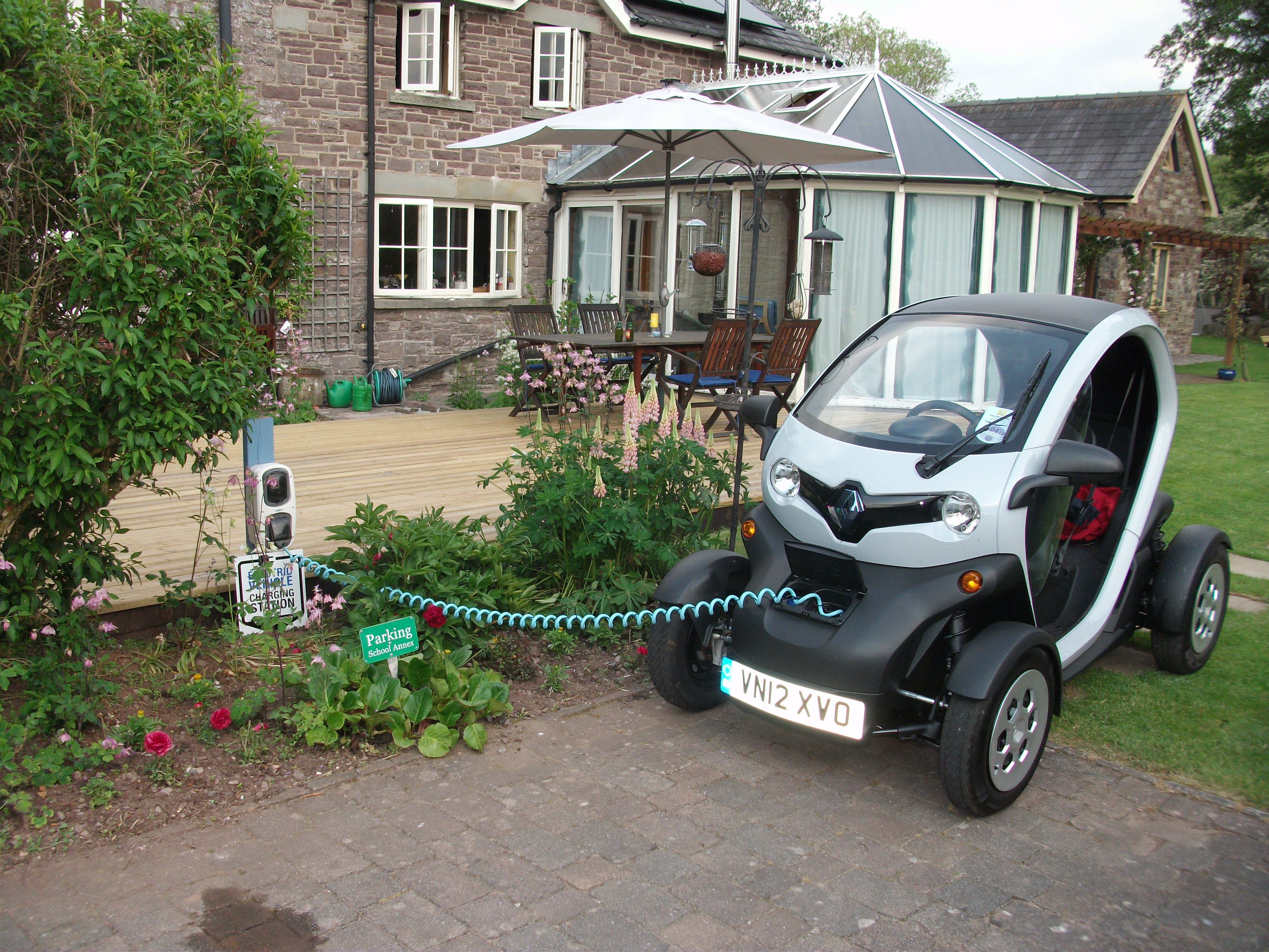 New Twizzy slurping some electricity from Zero Carbon World charging station at School Annex